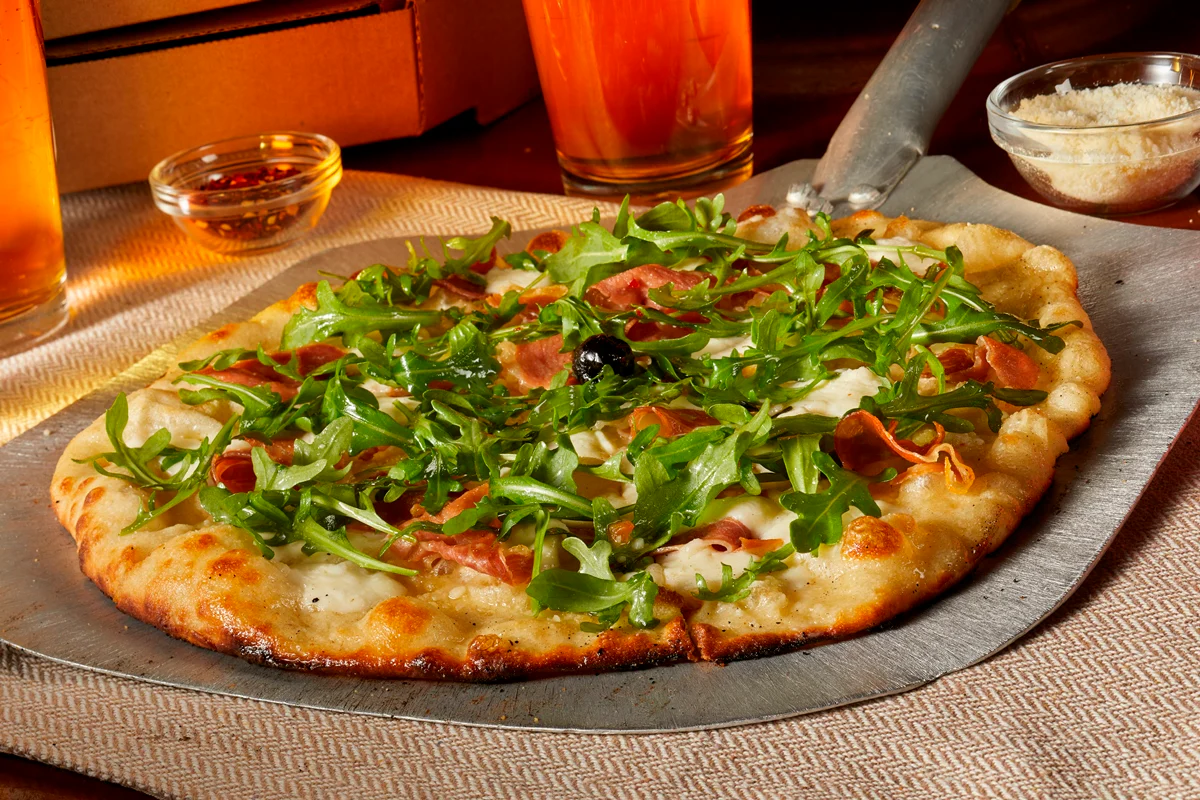 Prosciutto, caramelized onions, seasoned cream sauce, mozzarella & Pecorino Romano