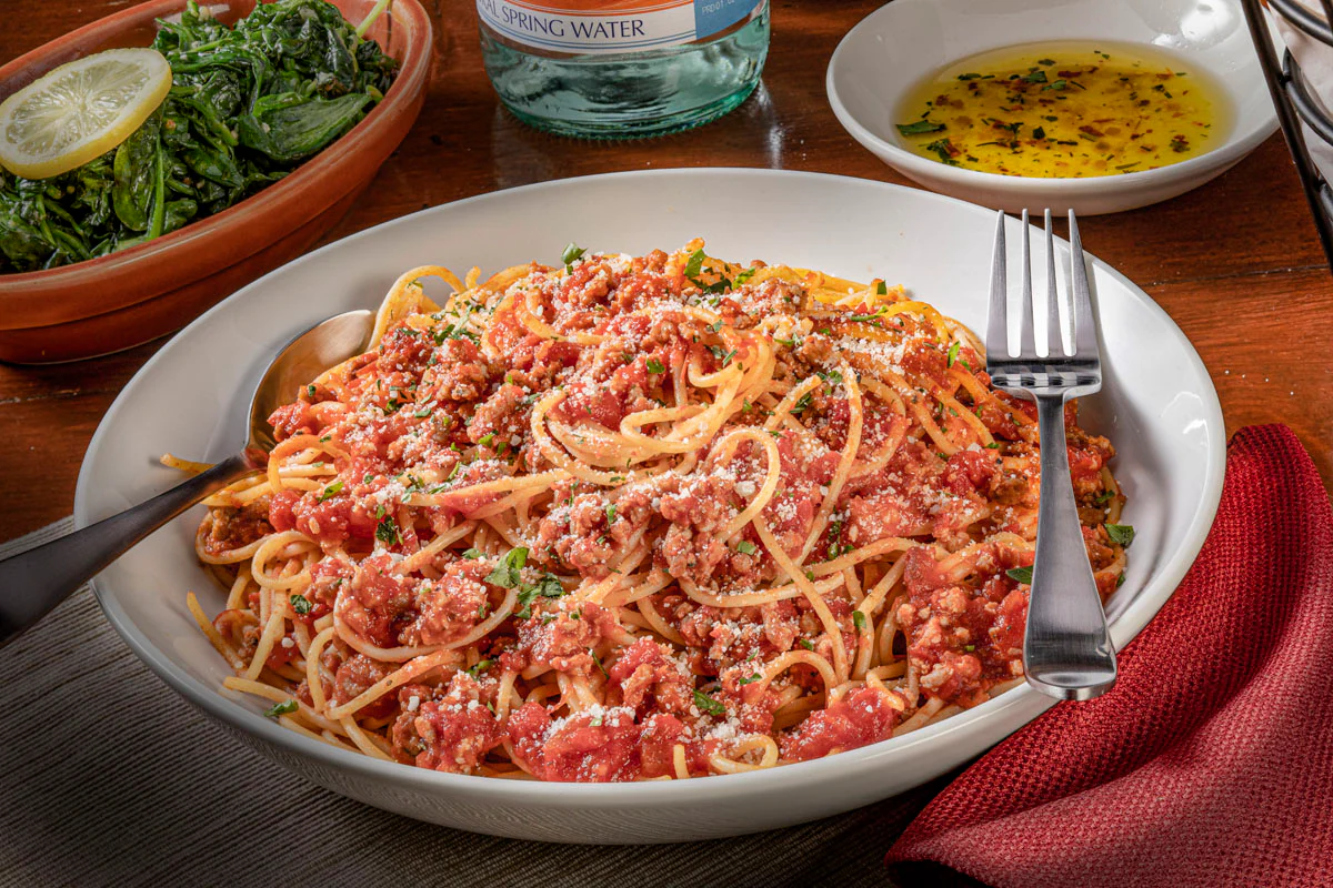 Spaghetti served with house-made meat sauce, served with Insalata & fresh baked rolls