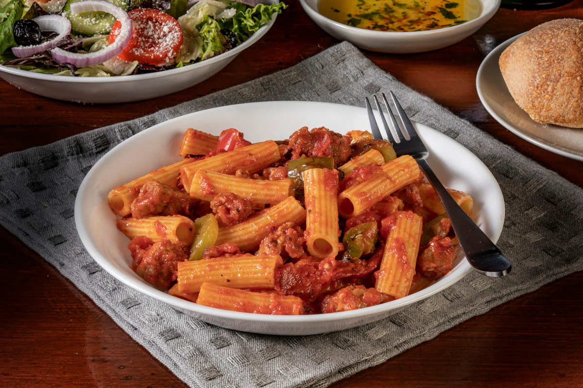 Roasted peppers, Italian sausage, rigatoni & mildly spicy tomato sauce, served with Insalata & fresh baked rolls