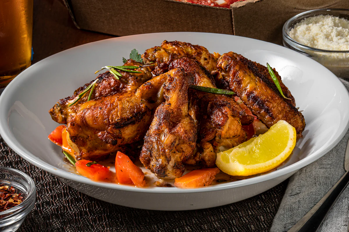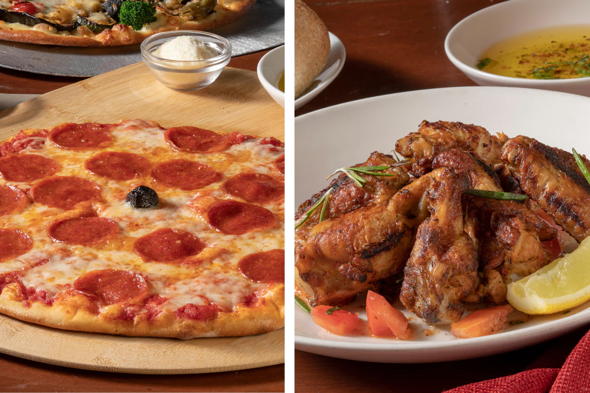 Enjoy 2 large pizzas, 24 Tuscan Chicken Wings, and our signature rolls. Perfect for sharing, this hearty bundle feeds 5–8 people.