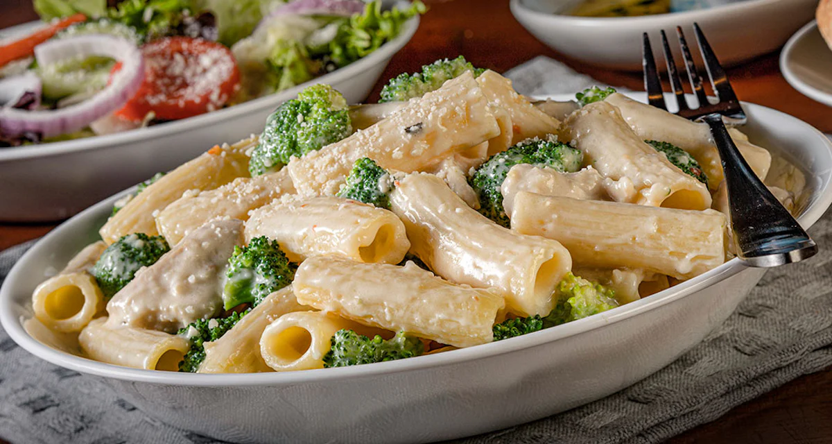 Fresh broccoli, rigatoni, roasted chicken, Pecorino Romano & lemon-garlic cream sauce, served with Insalata & fresh baked rolls