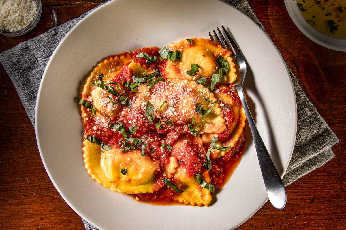 Home-style with ricotta, Parmesan, Pecorino Romano & Fontina cheese tossed with house-made pomodoro sauce, fresh basil & Bertucci's flavored oil {VT}