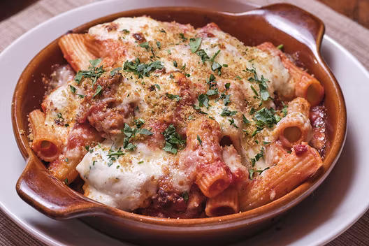 Oven-baked rigatoni with hand-crafted meatballs, house-made marinara sauce, mozzarella, whipped ricotta, Pecorino Romano & seasoned breadcrumbs