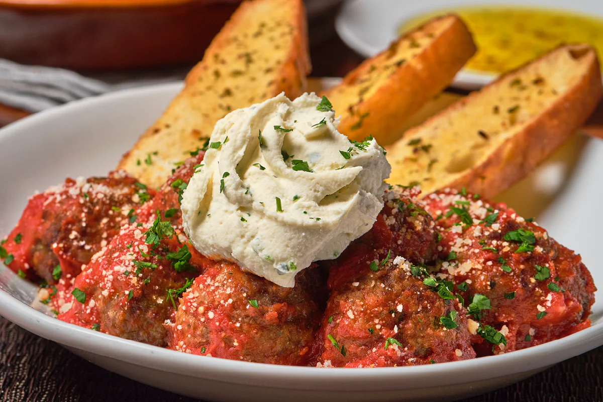 Hand-crafted meatballs, pomodoro sauce, Pecorino Romano, ricotta & mozzarella
