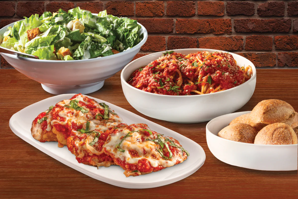 Includes choice of a Salad & Pasta. Served with our signature rolls! (Feeds up to 4)
