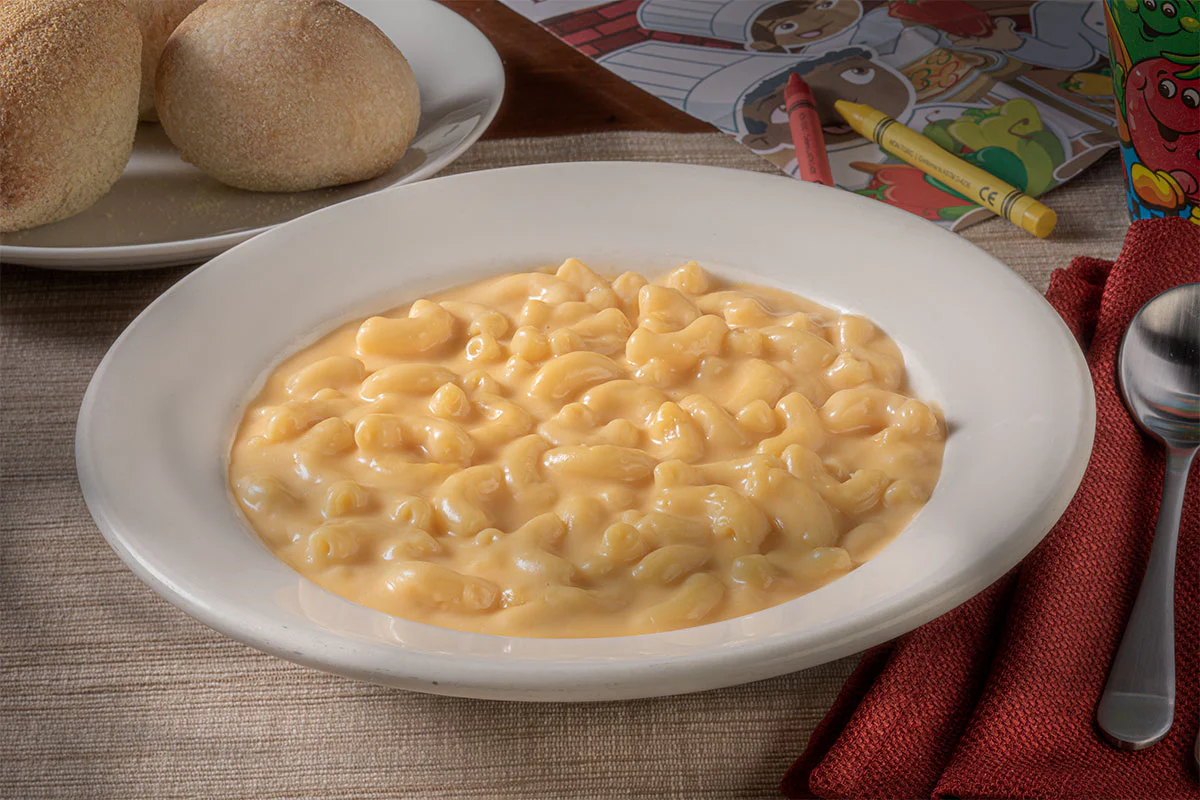 Elbow macaroni loaded with creamy cheese, includes choice of drink {VT}
