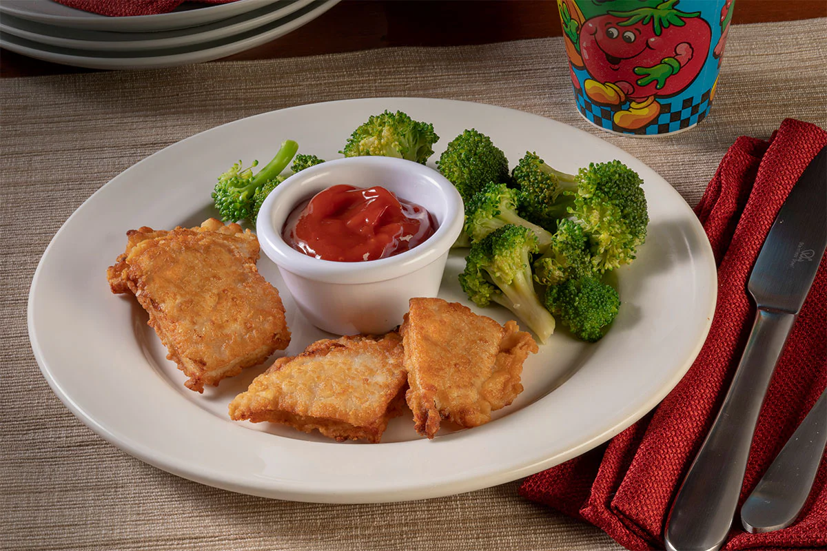 Sautéed breaded chicken served with choice of rigatoni with sauce or butter, steamed broccoli or seasonal fruit, includes choice of drink